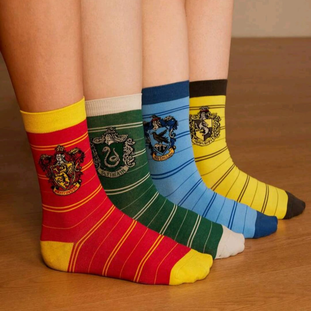Demuestra tu orgullo por Hogwarts con nuestras calcetas largas oficiales de Harry Potter, inspiradas en las cuatro casas más icónicas del colegio de magia y hechicería.
